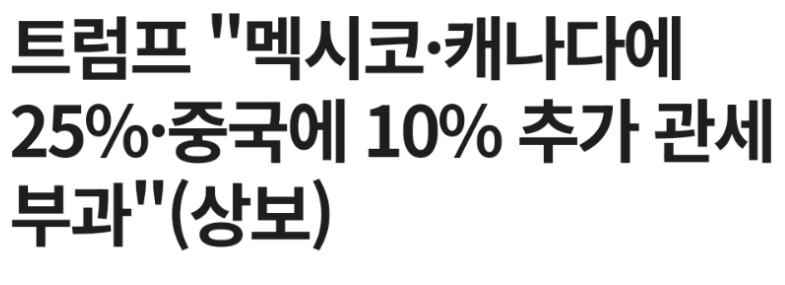 미국 대통령 트럼프의 정책에 따라 우리나라 경제도 많이 움직이는 것은 잘 아시죠? 이런 트럼프가 2월 1일 멕시코와 캐나다에 25%의 관세를 부과한다고 발표 했는데요. 이에 따른 영향에 대해 한번 알아볼까 합니다.