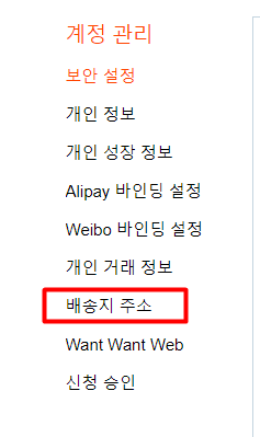 그 옆에 화살표를 누르고 계정관리 --> 배송지 주소를 차례로 클릭해 주세요